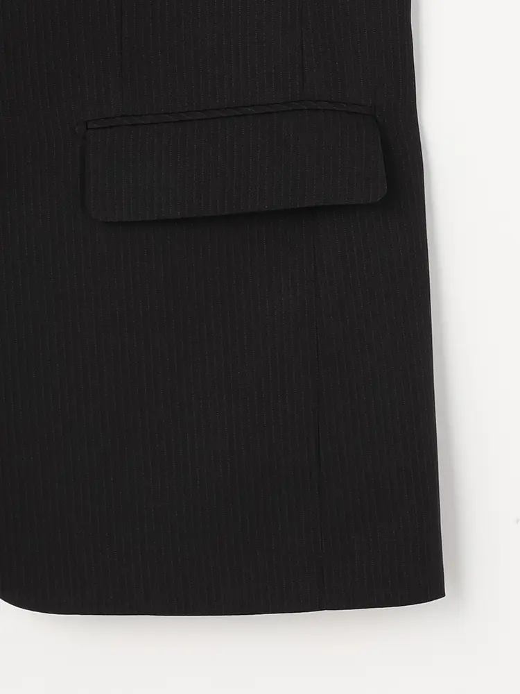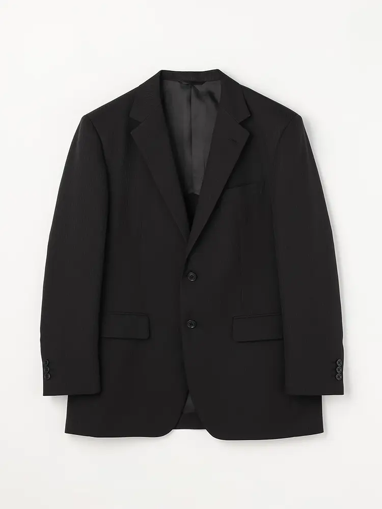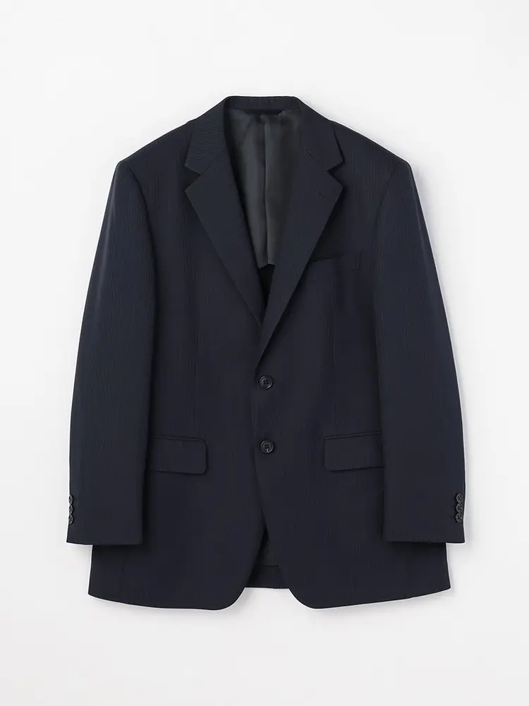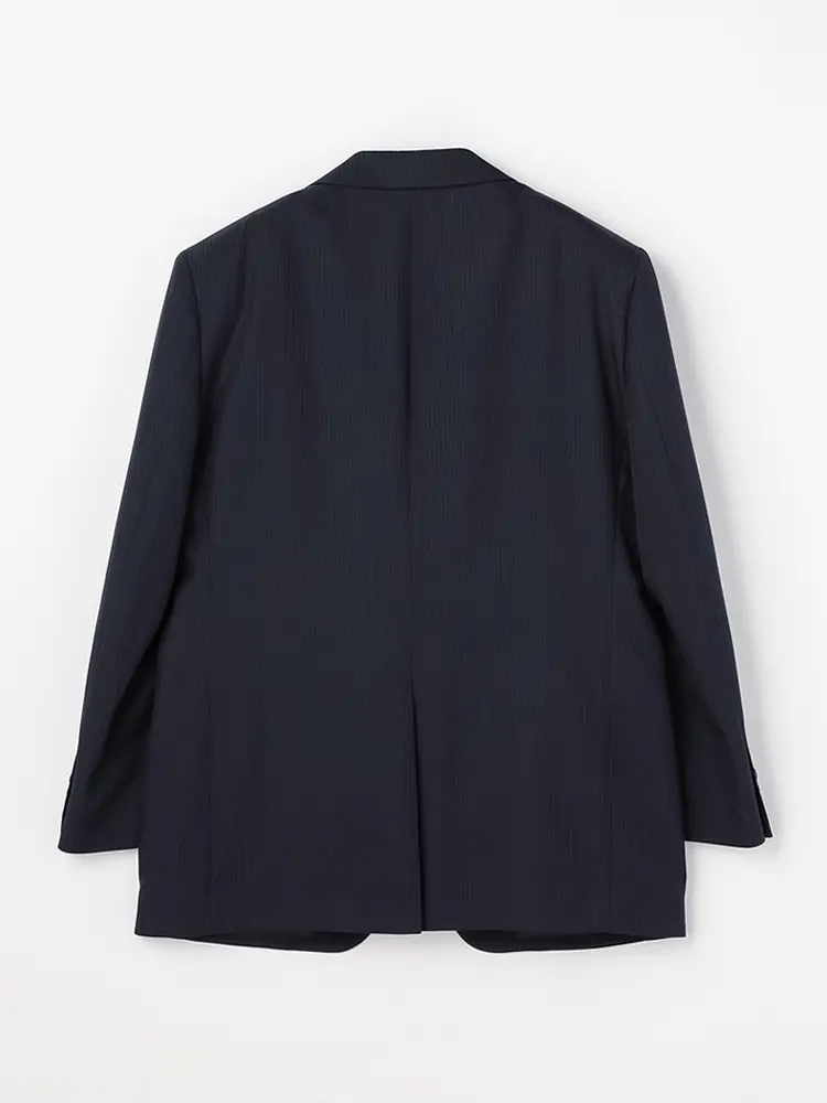 ジャケットは背抜き仕立てで、センターベントを入れた動きやすいデザイン。