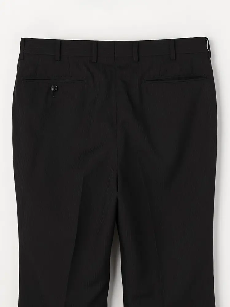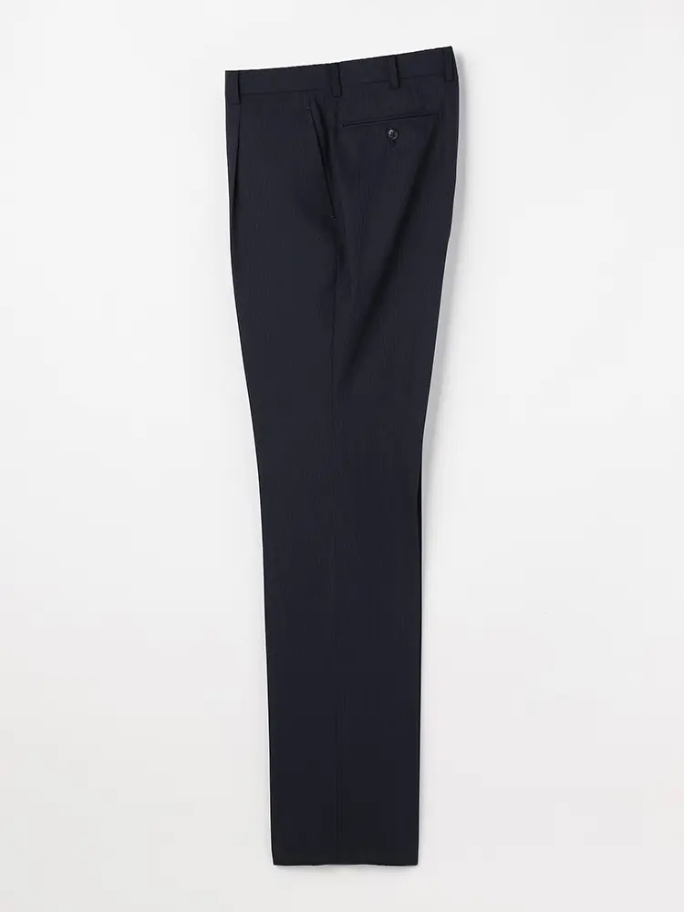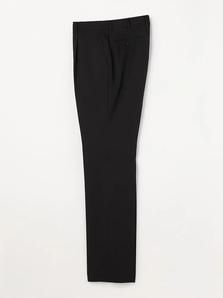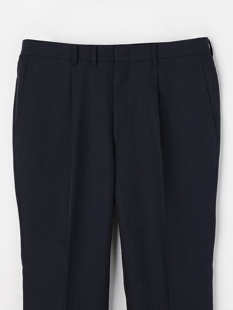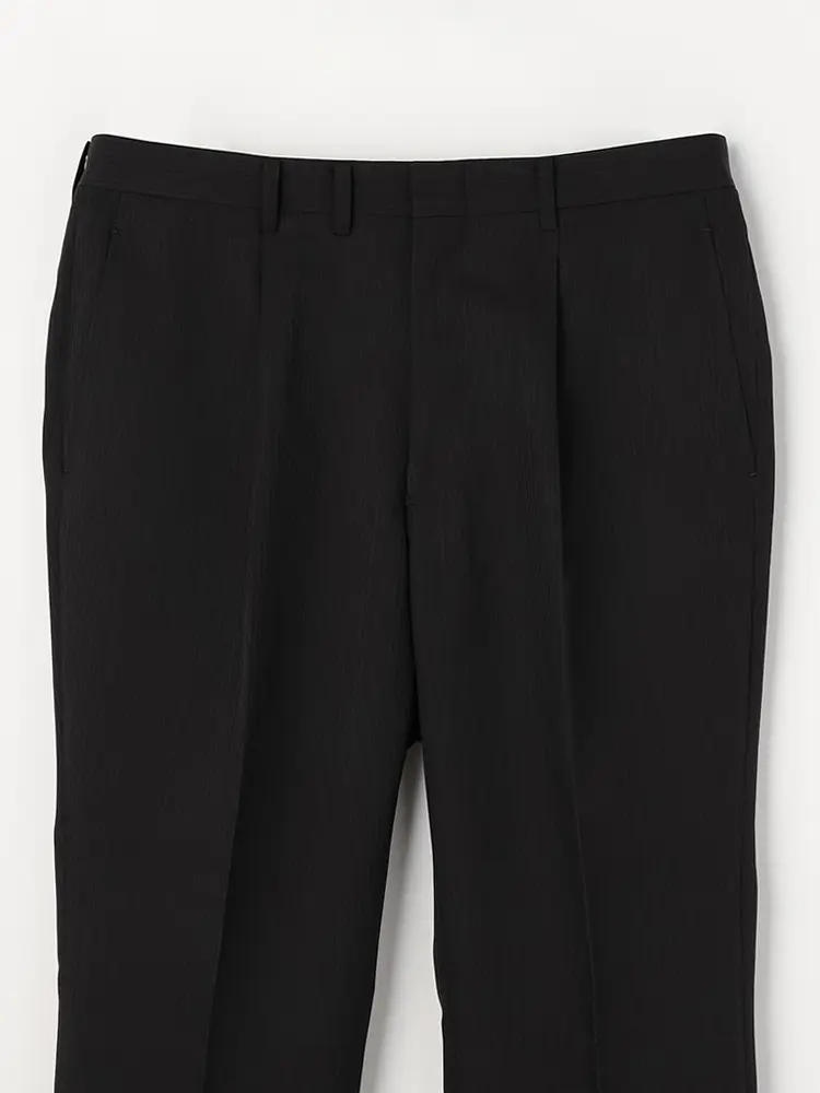 パンツはワンタック入りで立体感を出し、腰まわりにゆとりを持たせています。