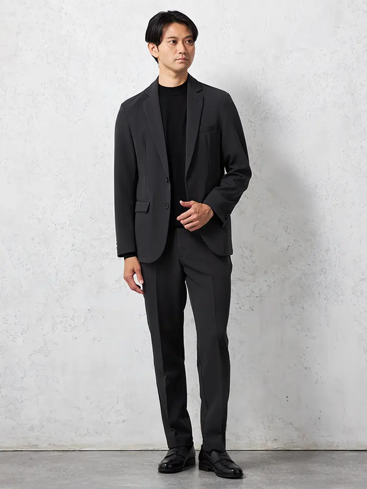 【AIR SUIT】 セットアップ ジャケット 2つボタン 防シワ(イージーケア) ストレッチ 通年 吸汗速乾 UVカット(ブラック)