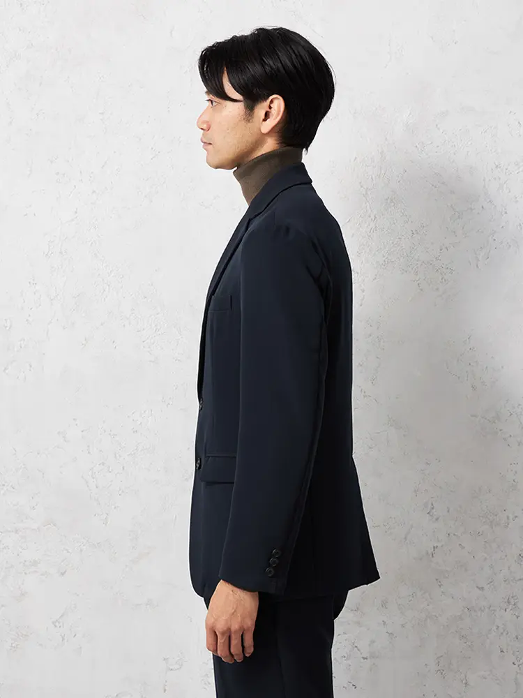 切り込みが1本のセンターベントデザインです。細身でスッキリとしたシルエットが特徴で、快適な着心地を提供します