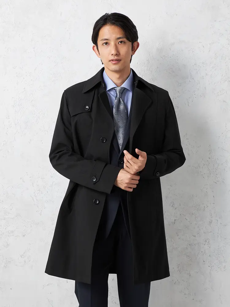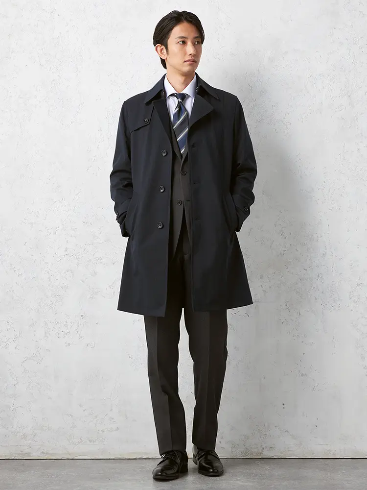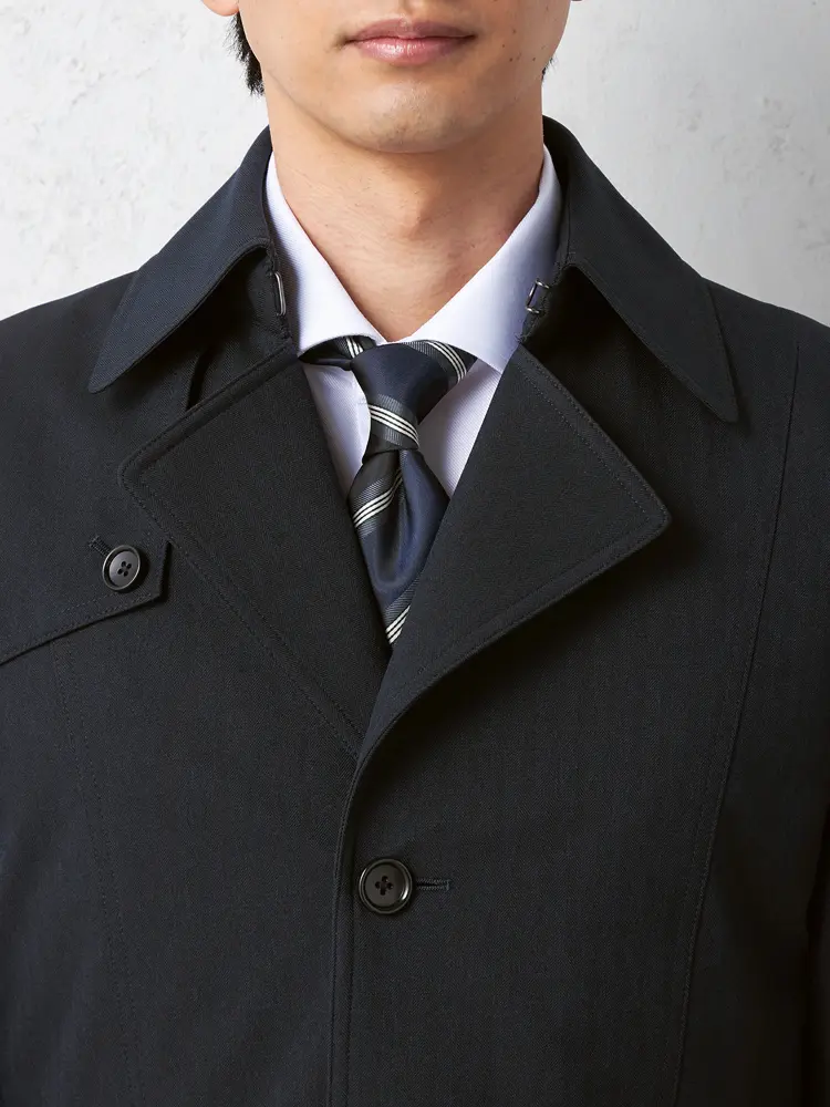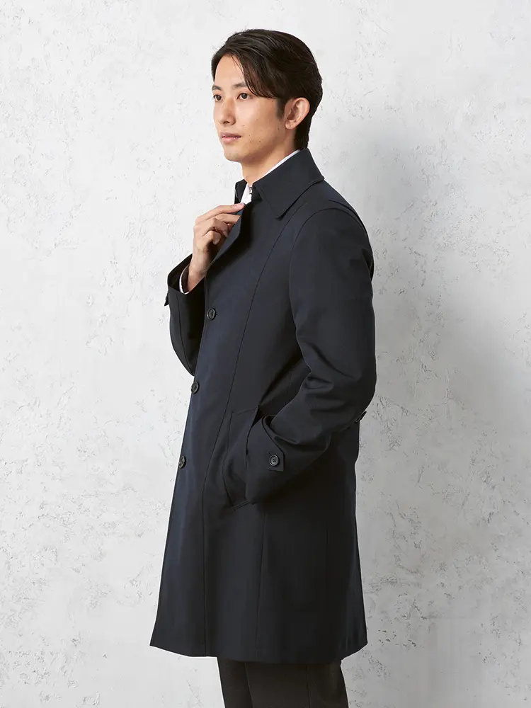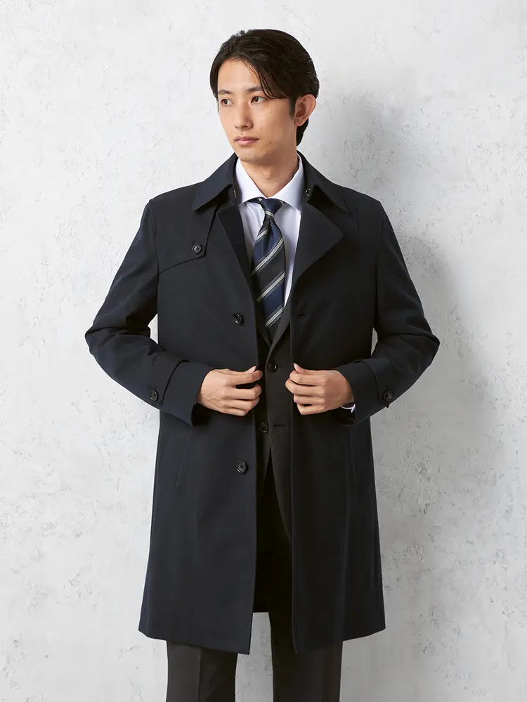 • ネイビー 【NERO】 セミトレンチコート ライナー付 コート ヘリンボン 撥水加工 ストレッチ 秋冬【スリムデザイン】 | はるやま公式通販