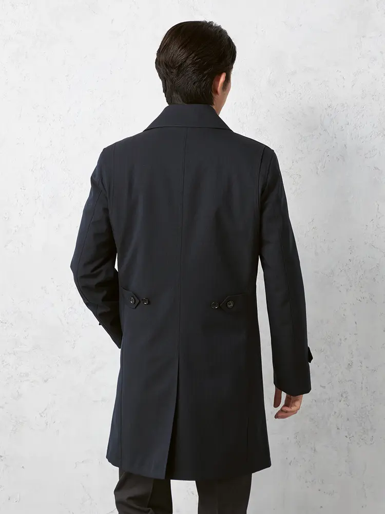 【NERO】 セミトレンチコート ライナー付 コート ヘリンボン 撥水加工 ストレッチ 秋冬【スリムデザイン】(ネイビー)