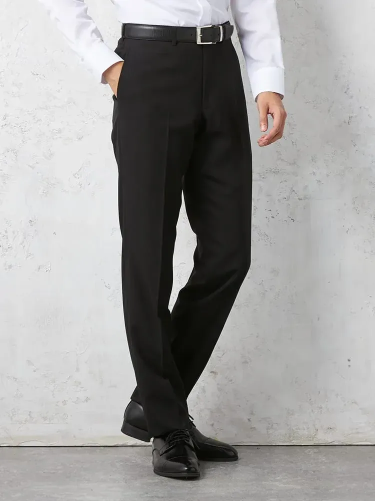 パンツの腰回りに生地の折り込みがなく、スッキリとしたシルエットを実現します。シンプルで洗練された印象を与え、すっきりとした着こなしが可能です。