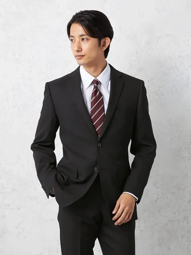 • 【即納】【WEB限定】褒められスーツ  2つボタン ブラック シャドウストライプ 上下ウォッシャブル 3シーズン対応 入社式 入学式 おすすめ | はるやま公式通販
