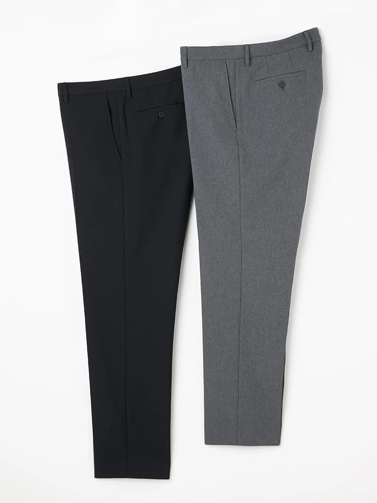 シンプルで合わせやすいスラックス2色【ネイビー・L.グレー】をパックにしてお届けします。