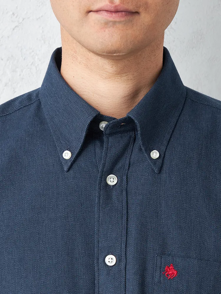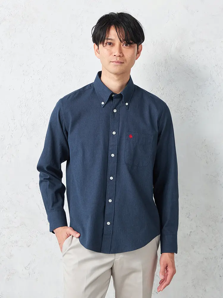 【POLO BCS】 デニムライク バーズアイ調 ボタンダウン カジュアルインナー シャツ長袖 バーズアイ 春夏