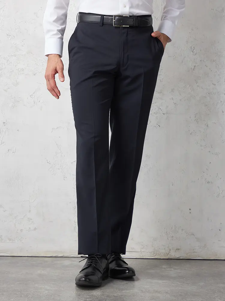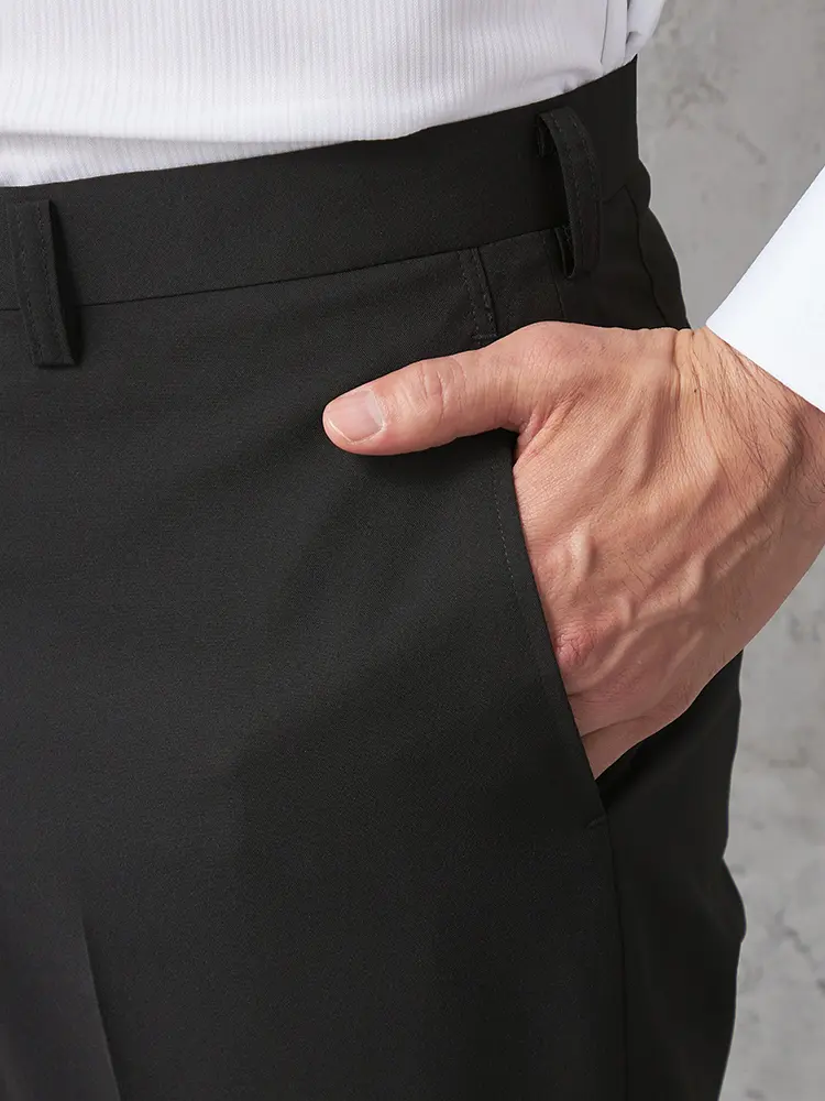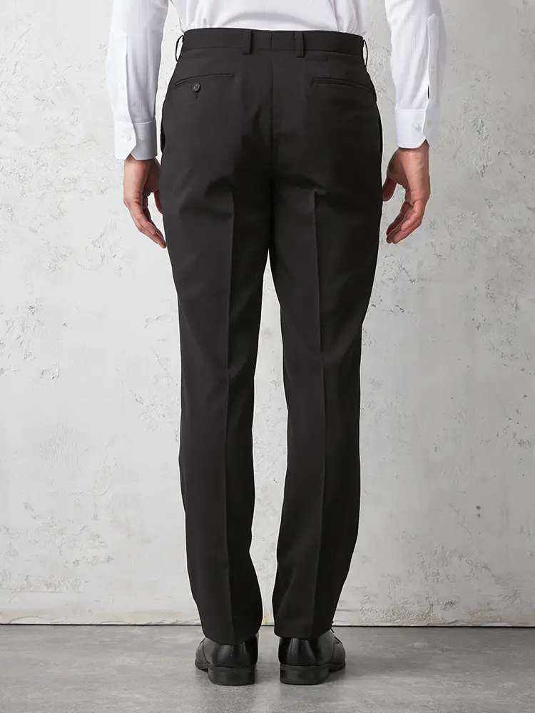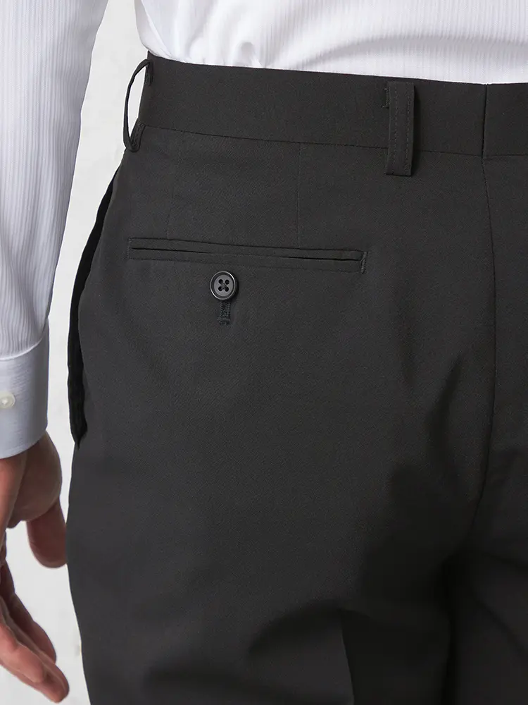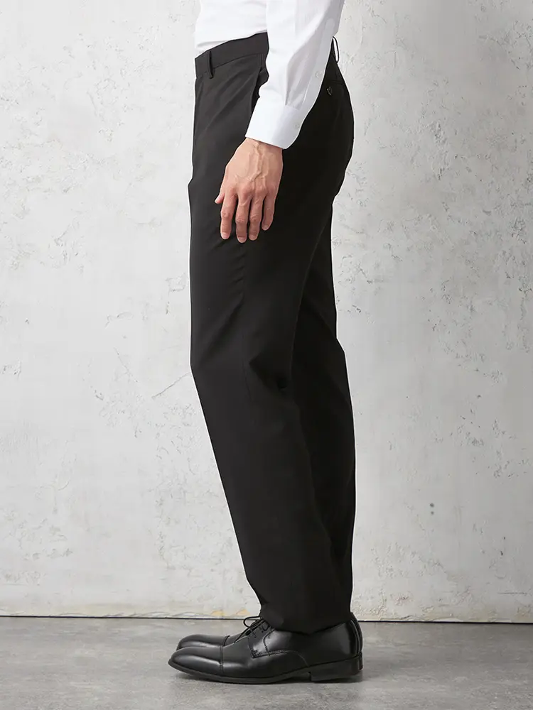 腰回りがすっきり見える定番のノータックシルエットが、足元をスマートに引き立てます。