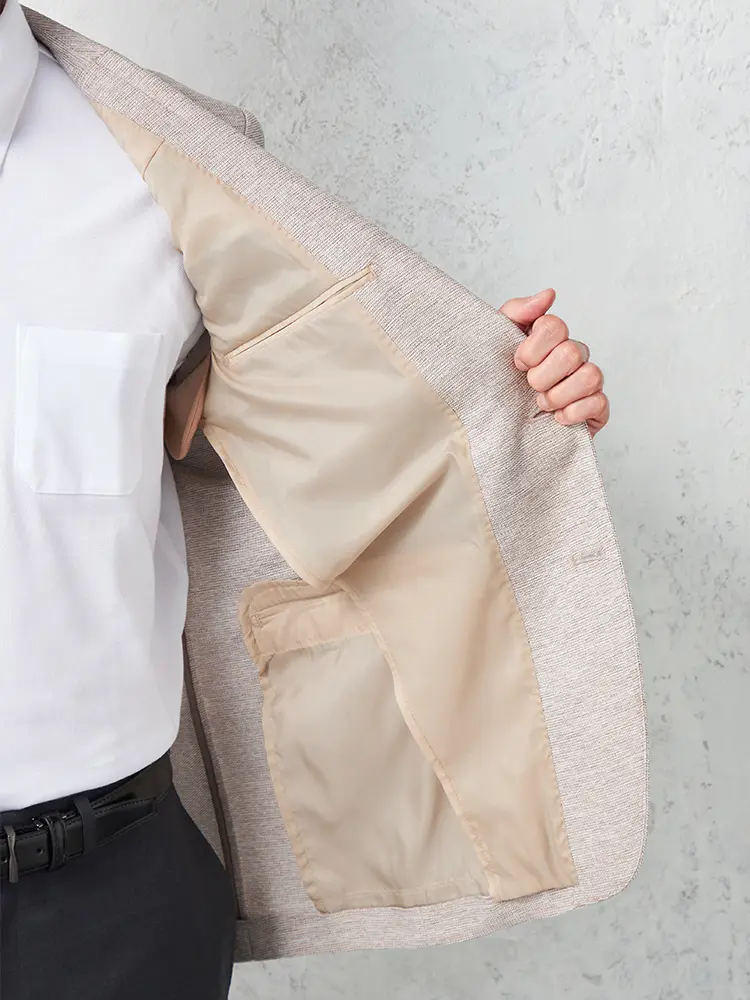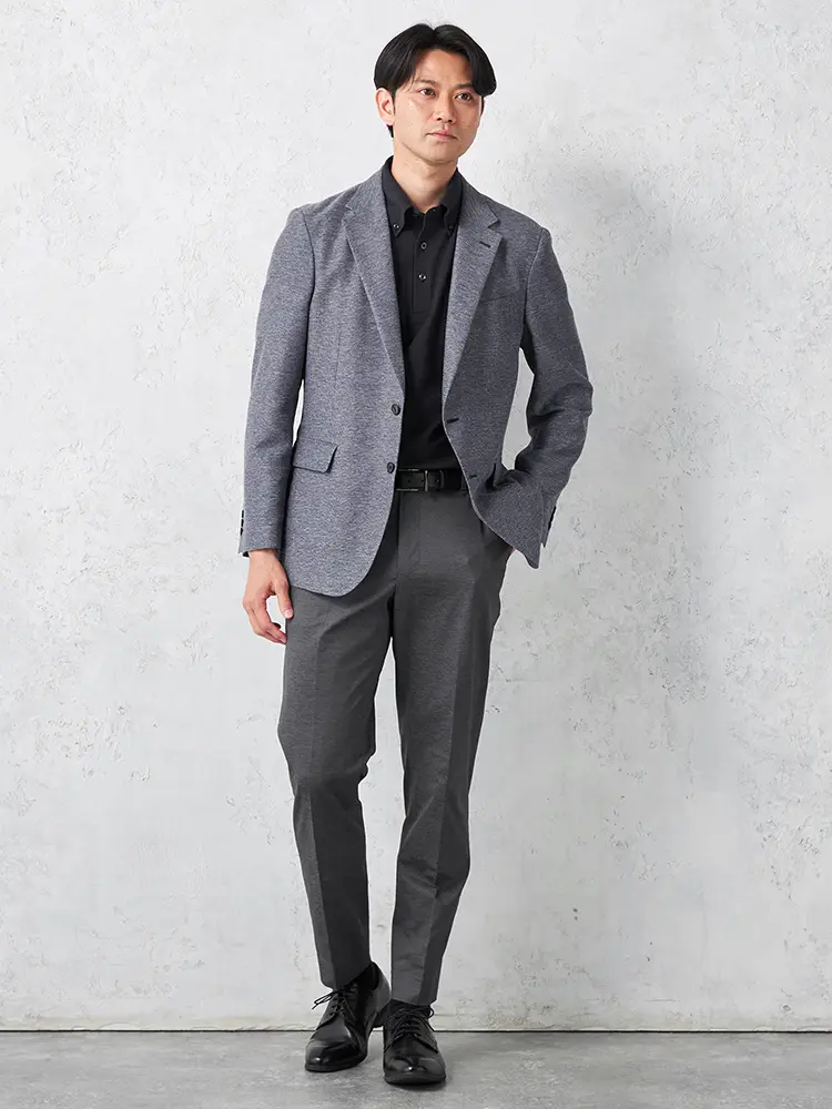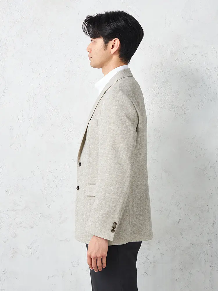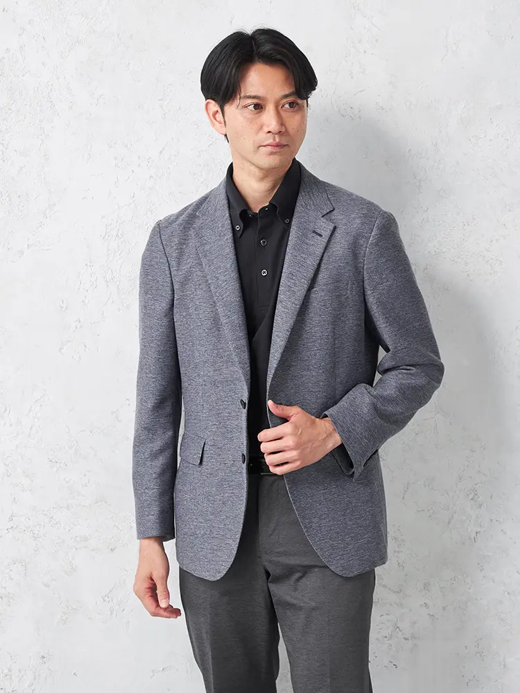 半裏仕様とセンターベントで軽快に、ドレッシーな光沢感とストレッチ性も兼備。