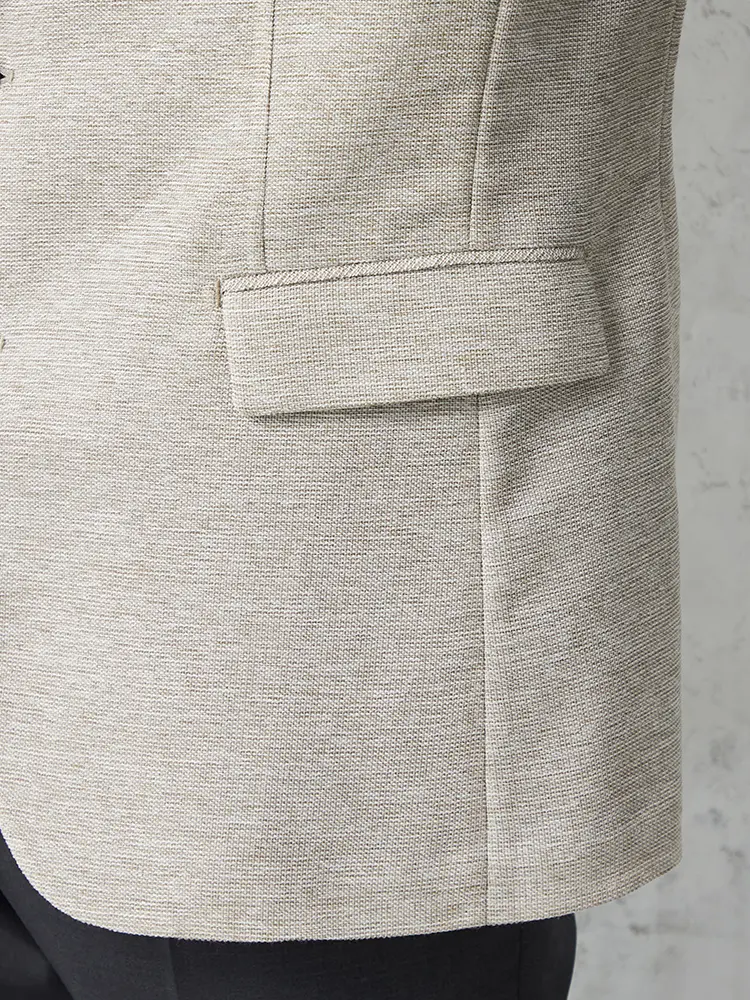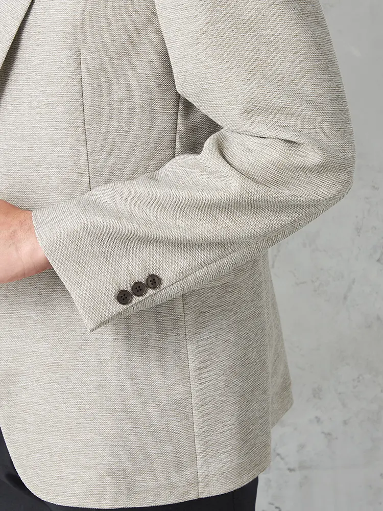 【リッケンバッカー】 カラミ織ジャケット 2つボタン ウォッシャブル 通気性 春夏(ベージュ)