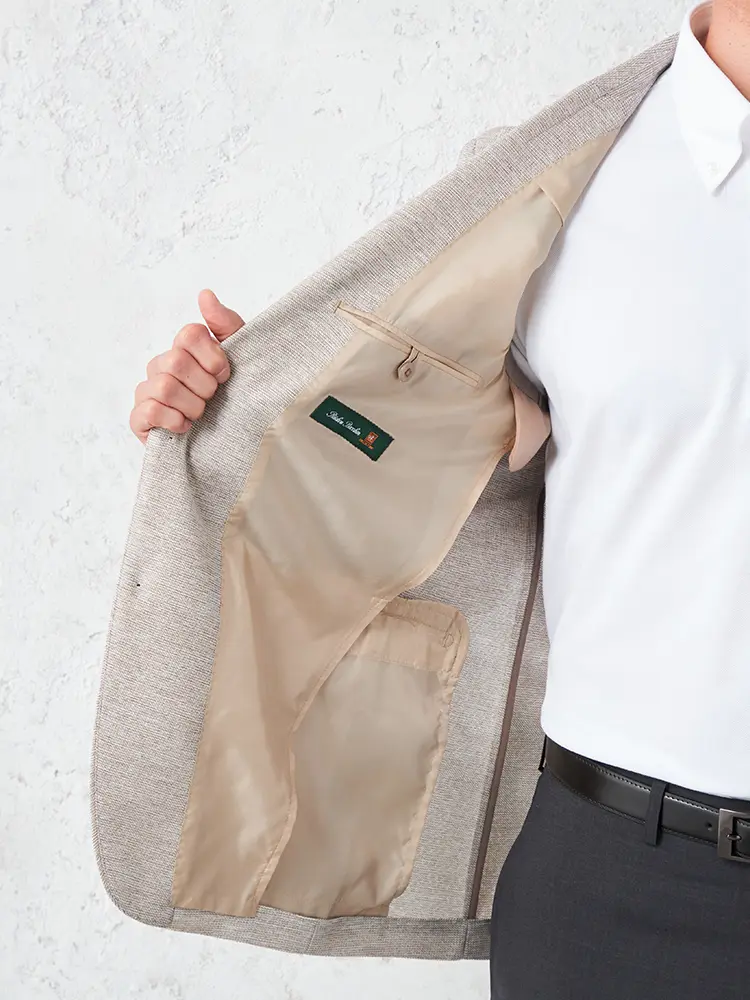 通気性に優れた「レノクロス(カラミ織)」を使用し、立体的な織りによる格段の涼しさと軽量仕立てを実現しました。