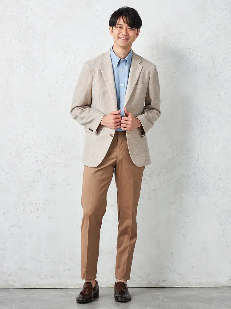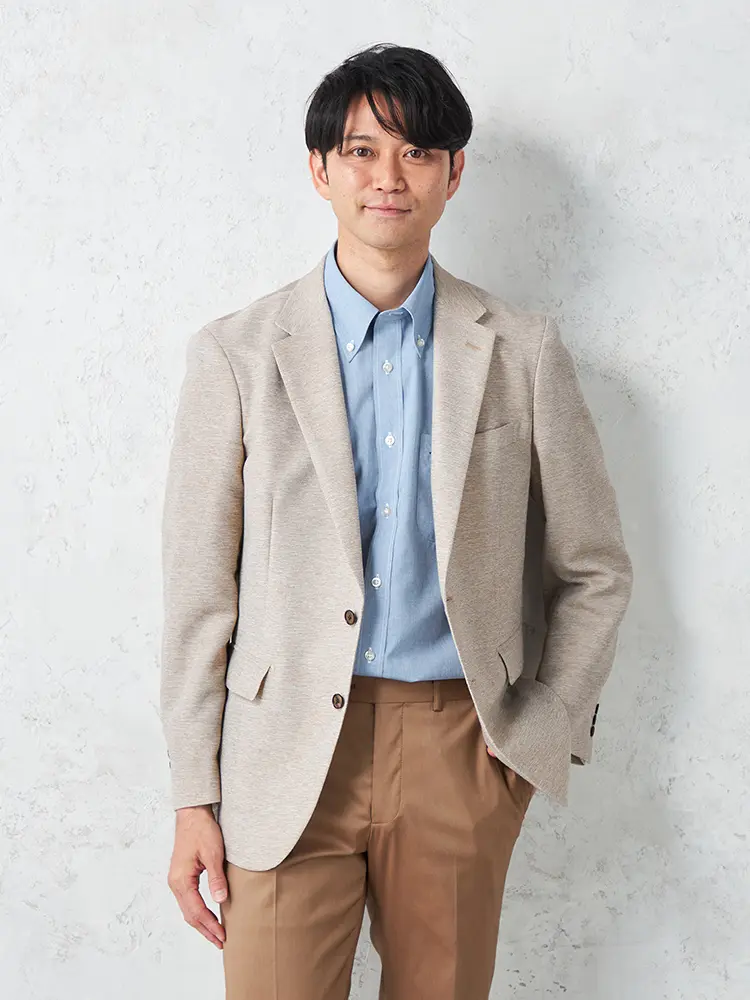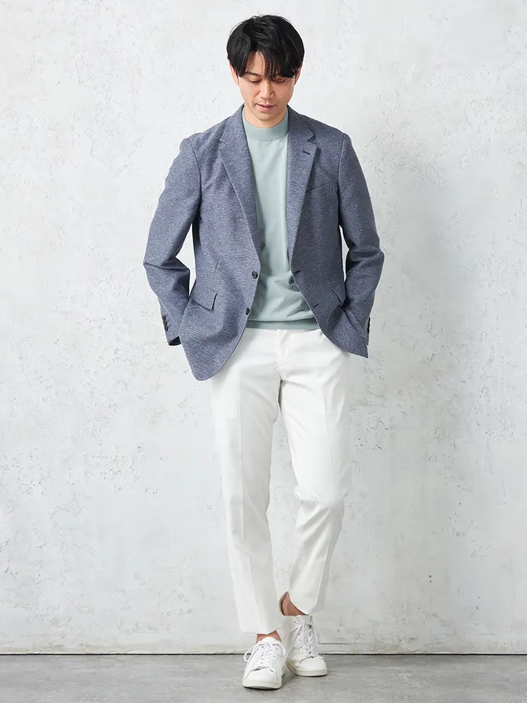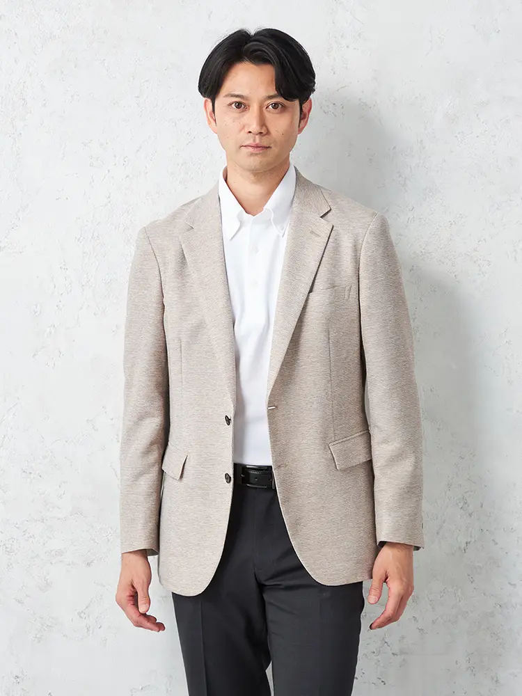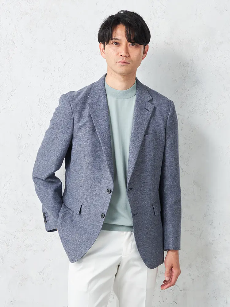 春夏シーズンに最適な明るいトーンの2つボタンジャケット。