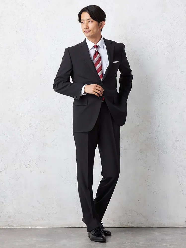 抜群のストレッチ性と嬉しいウォッシャブル機能付きのスーツは会議からテレワークまであらゆるシーンで活躍します。
