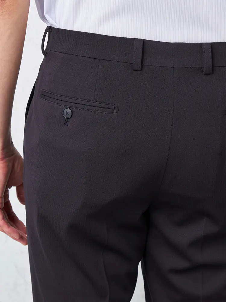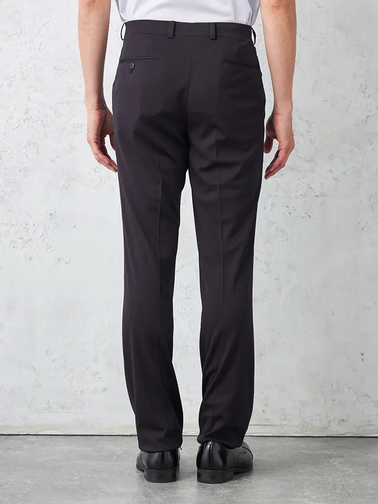 腰回りはレギュラー型のノータックですっきり仕上げ、センタープレスが大人っぽくキレイ目な印象を演出します。
