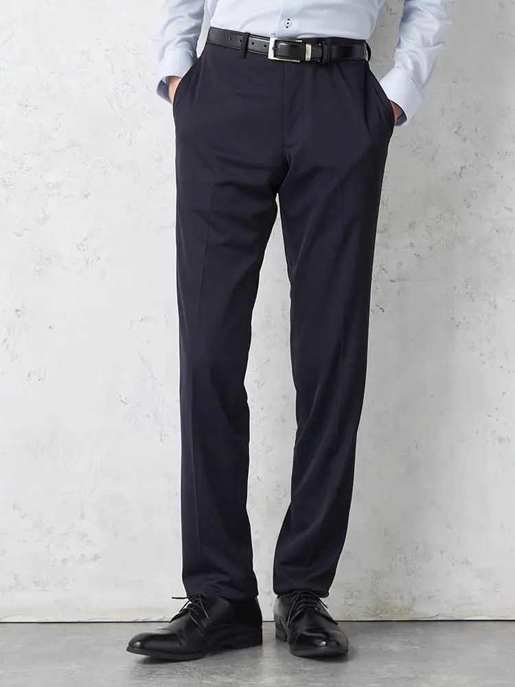 【イタリア製素材REDAFLEXO使用】パンツスラックスノータック無地S&MBLUELABEL