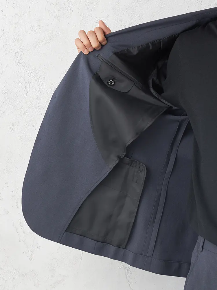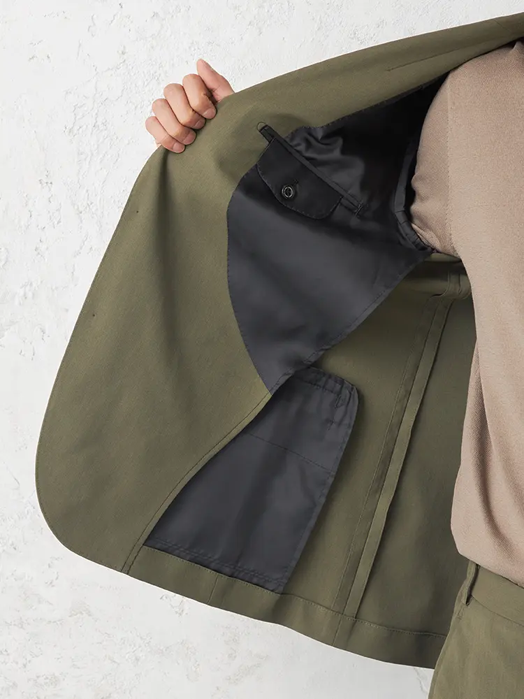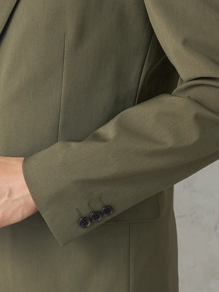 動きやすいストレッチ性に加え、センターベント、軽やかな半裏仕立てを採用。