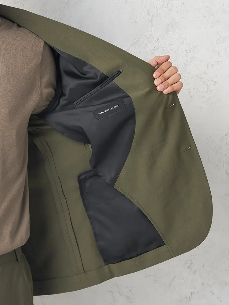 【キャサリン E ハムネット】 コットンライクセットアップジャケット ウォッシャブル ストレッチ 春夏(カーキー)