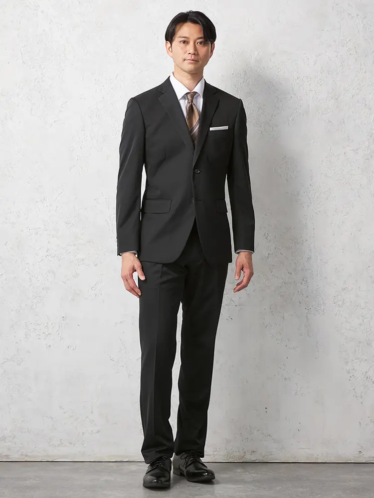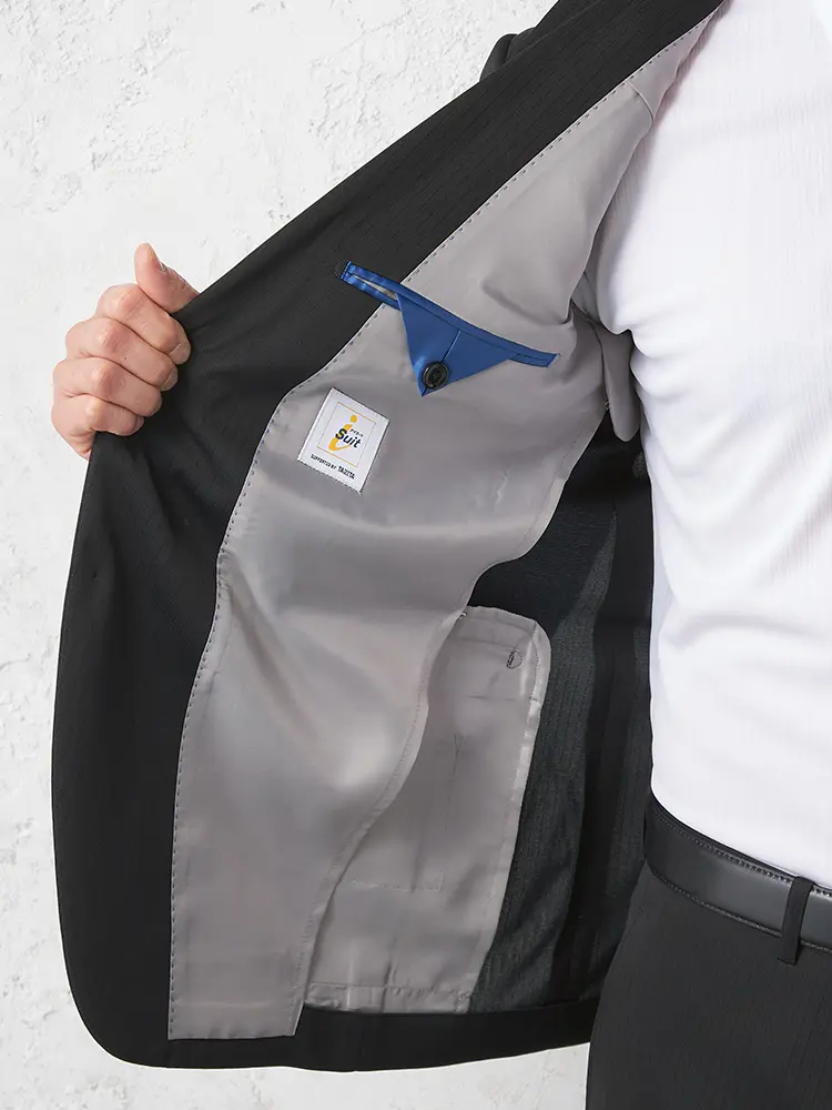 【上下ウォッシャブル】スーツ2つボタン軽量表地ストレッチ素材ワンタック織柄無地nero【i-Suit-アイスーツ-】春夏【スリムデザイン】