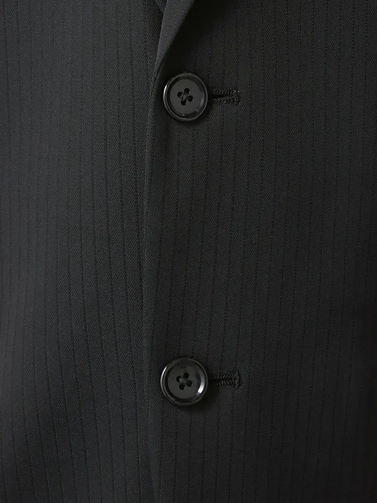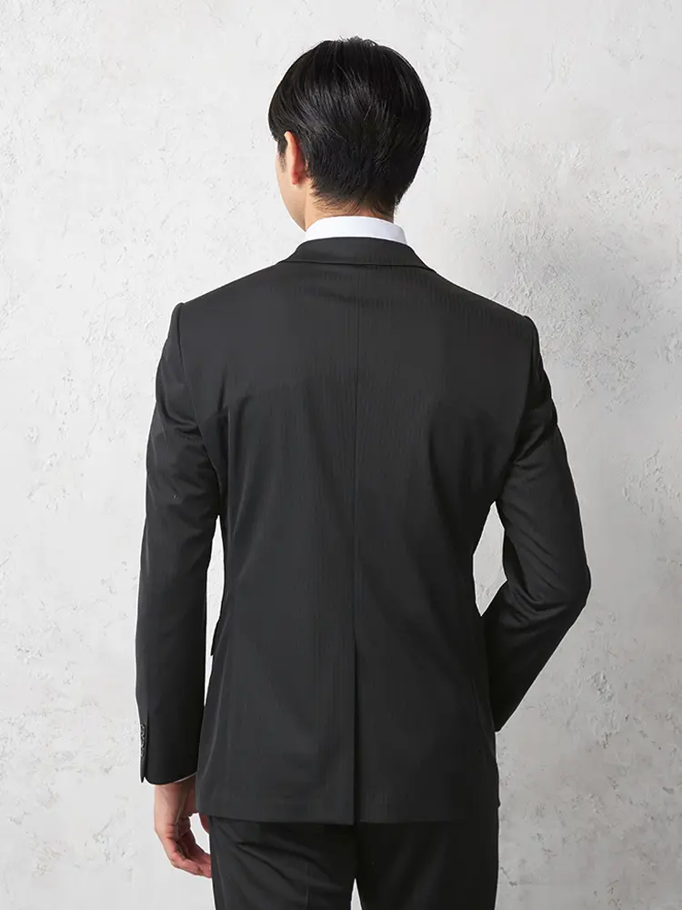 【即納】スーツ2つボタン【WEB限定】上下ウォッシャブルブラックストライプ3シーズン対応