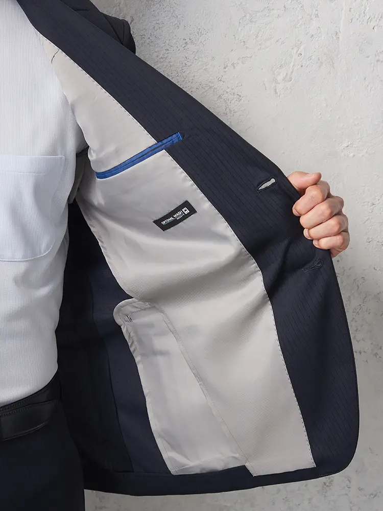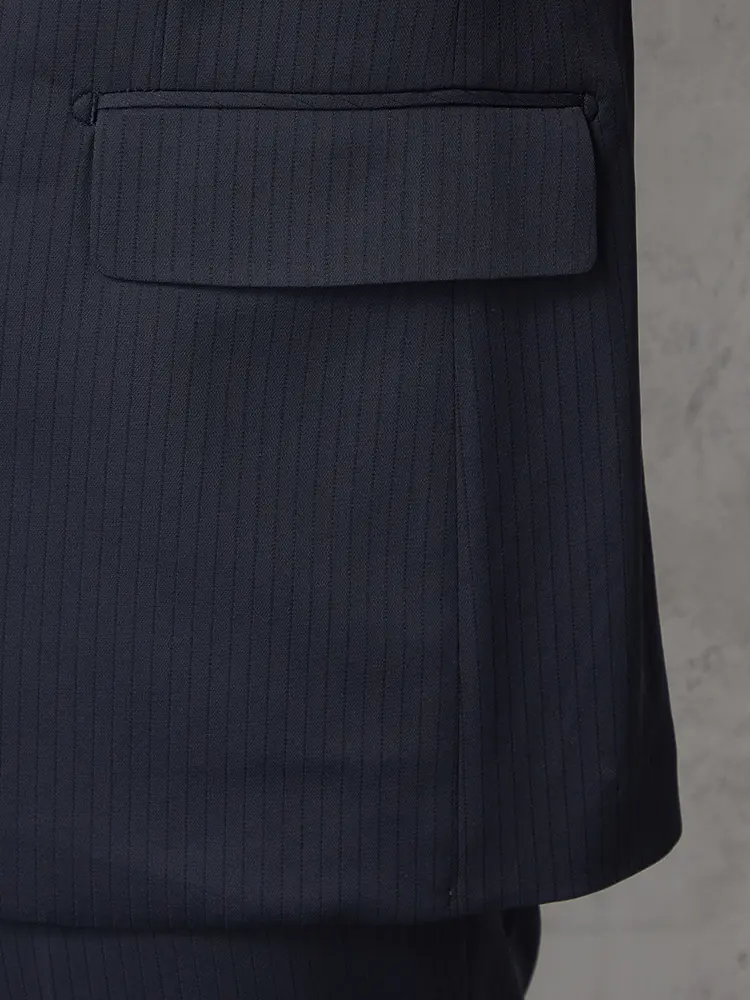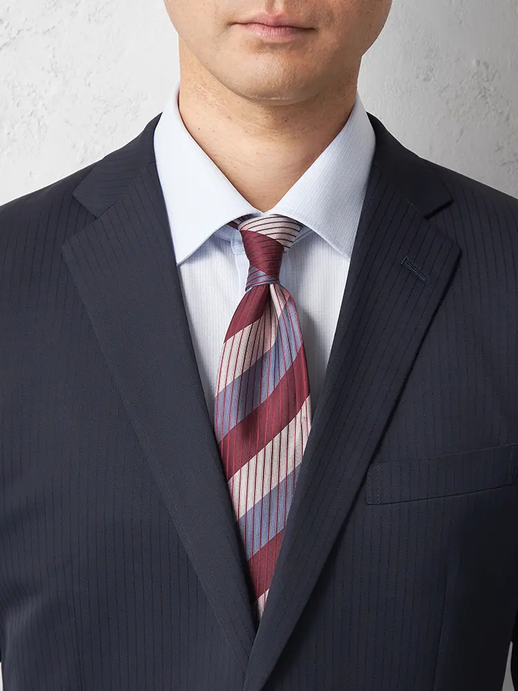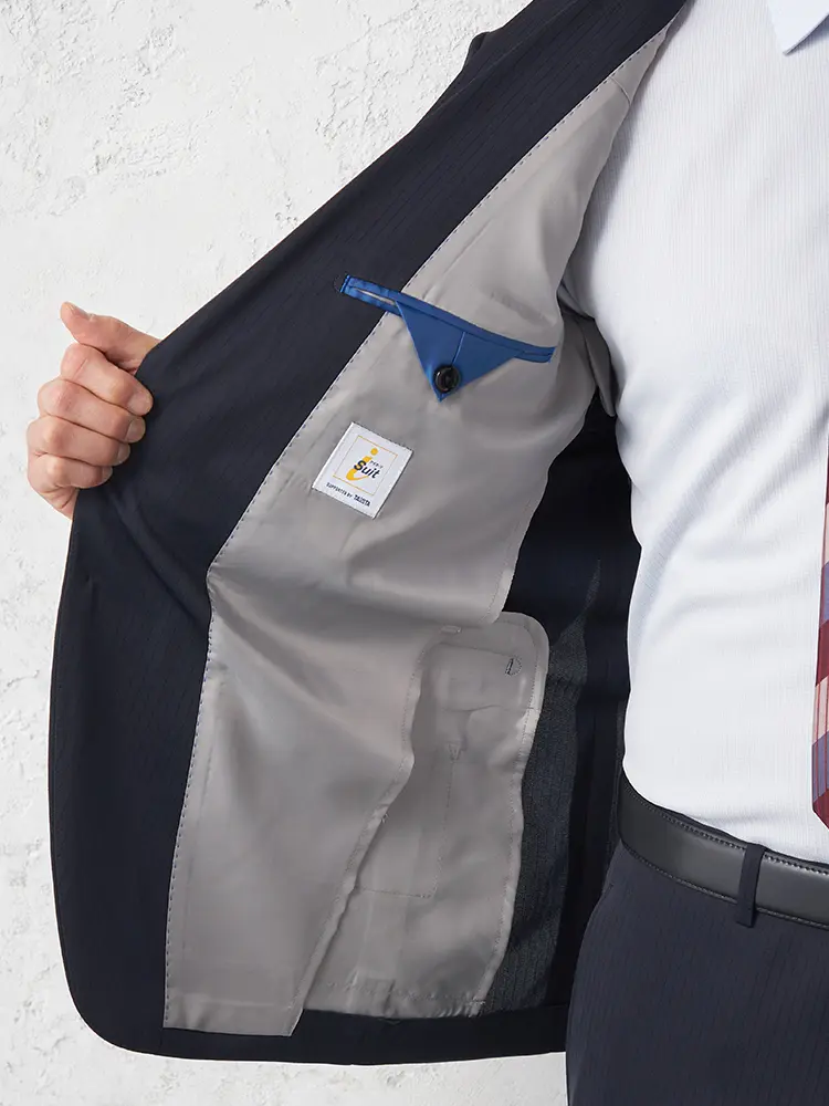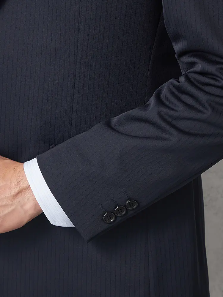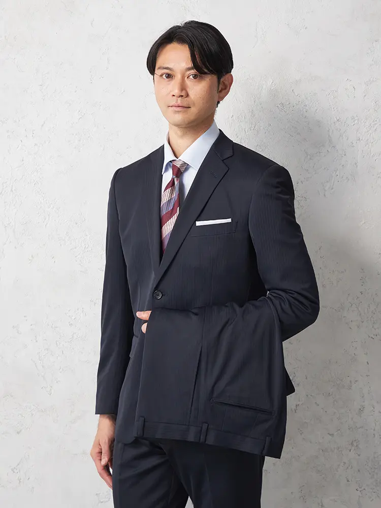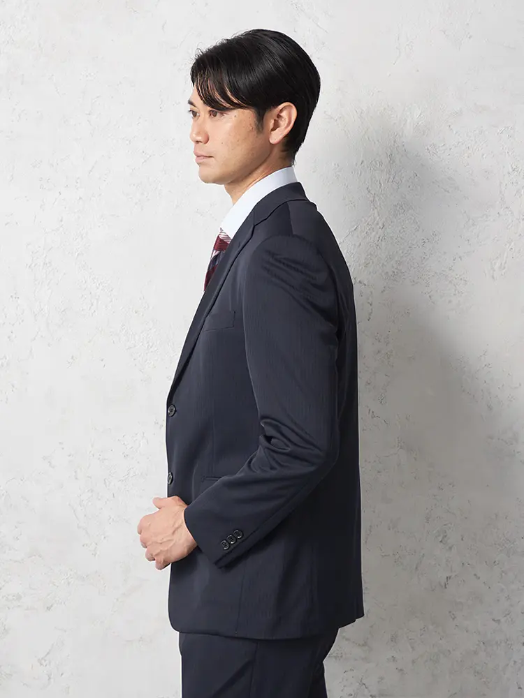 【即納】スーツ2つボタン【WEB限定】上下ウォッシャブルネイビーストライプ3シーズン対応
